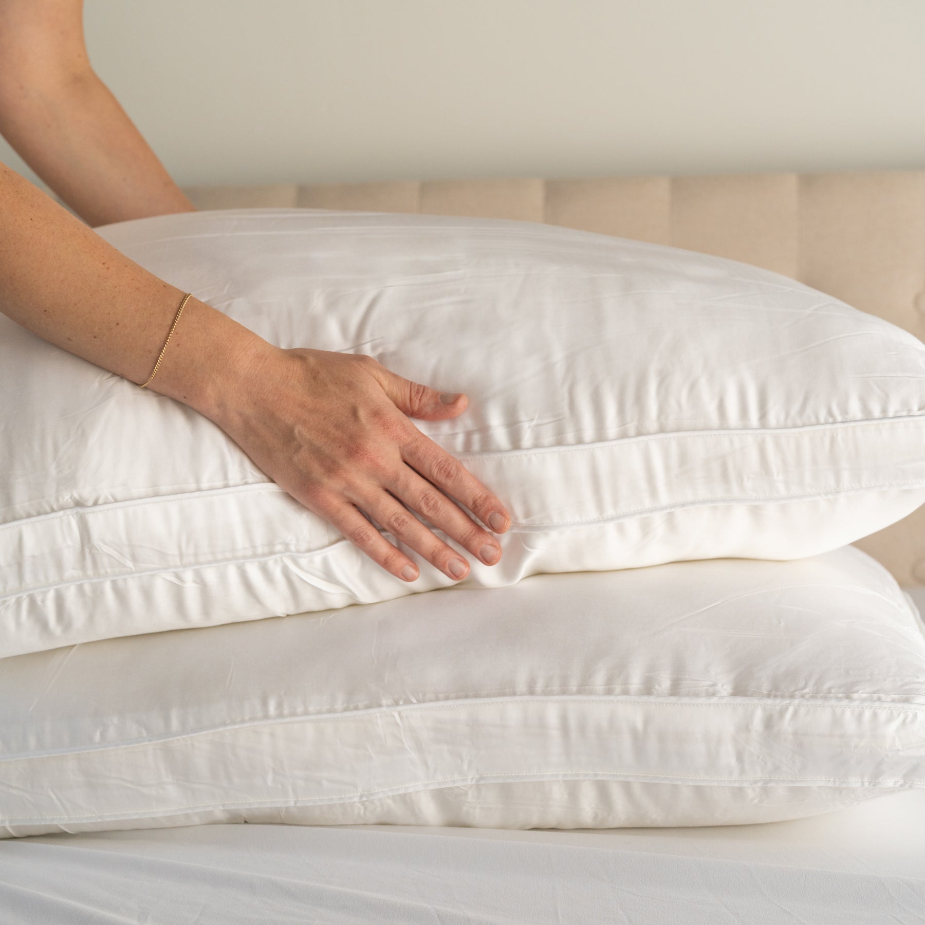 Get ready to rest your head on a cloud. Our premium bamboo pillow offers the perfect balance of plushness, loft, and breathability for a truly rejuvenating night’s sleep. Crafted from our signature blend of plant-based and recycled materials, this dreamy pillow cradles your head in marshmallow-like comfort while keeping you cool and supported all night long. Featuring a structured gusset and refined piping, it combines elegant design with dreamy support for a perfectly cozy sleep experience. Each pillow sold individually.